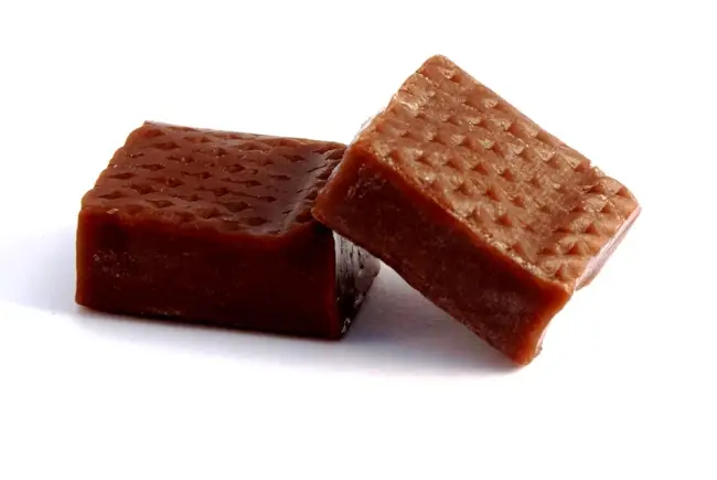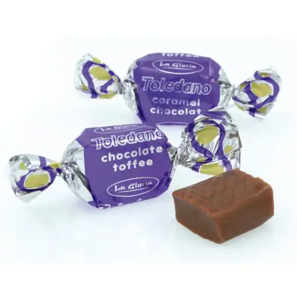 Caramelos de toffee y chocolate. Masticables y con un sabor dulce y delicado.